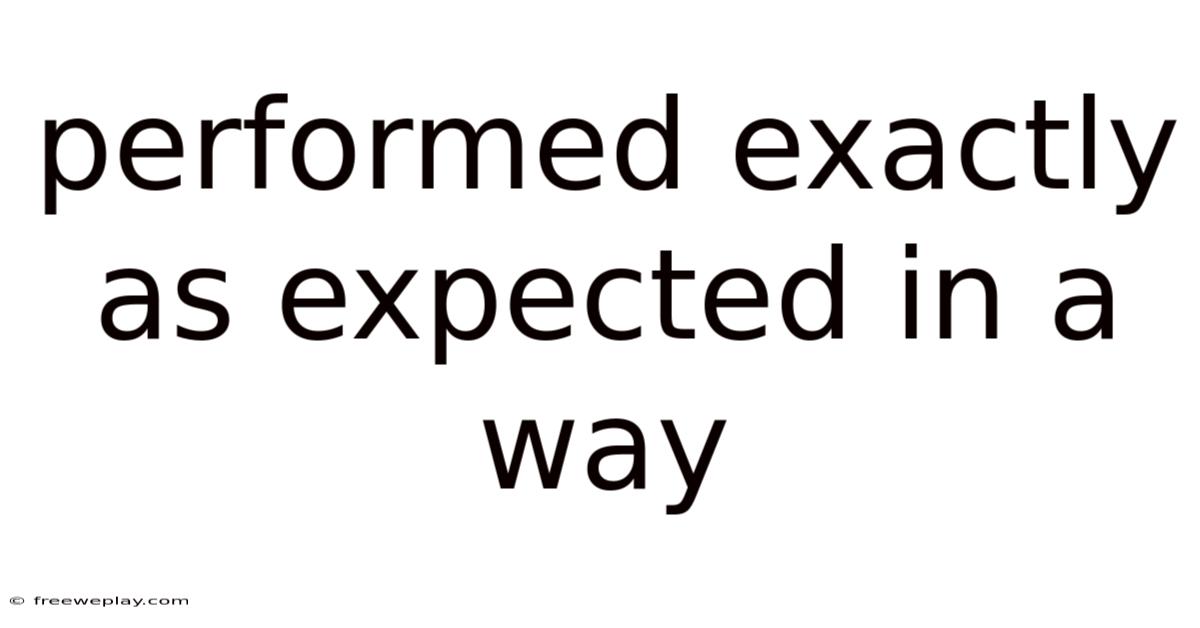The phrase "performed exactly as expected in a way" encapsulates a concept that is both straightforward and profoundly significant in various contexts. At its core, it refers to a situation where an action, process, or outcome aligns precisely with the predefined expectations or goals set by an individual, organization, or system. In real terms, this idea is not merely about meeting expectations but about achieving them without deviation, ensuring that every element of the process or result adheres to the intended design. Whether in technology, business, personal goals, or scientific research, the ability to perform exactly as expected in a way is a hallmark of precision, reliability, and effective planning.