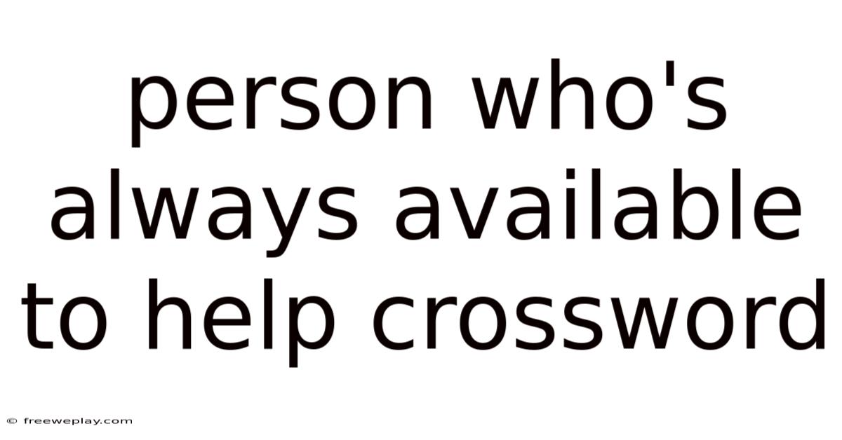 A person who’s always available to help with crossword puzzles is more than just a casual player. In practice, they are a resourceful individual who understands the intricacies of the game. Their role extends beyond simply answering clues—they provide guidance, encouragement, and even strategies to tackle the puzzle more effectively Which is the point..