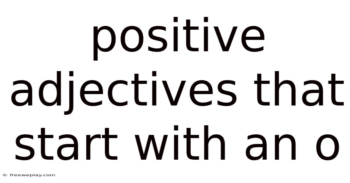 The English language offers a rich collection of adjectives beginning with the letter O that carry inherently positive connotations. On the flip side, from describing someone as optimistic to calling a meal outstanding, these words give us the ability to express favorable impressions with precision and elegance. This complete walkthrough explores the world of positive O-adjectives, providing you with the knowledge and tools necessary to incorporate them naturally into your everyday speech and writing. By the end of this article, you will have a thorough understanding of these adjectives, their proper usage, and how they can elevate your communication to new heights Nothing fancy..