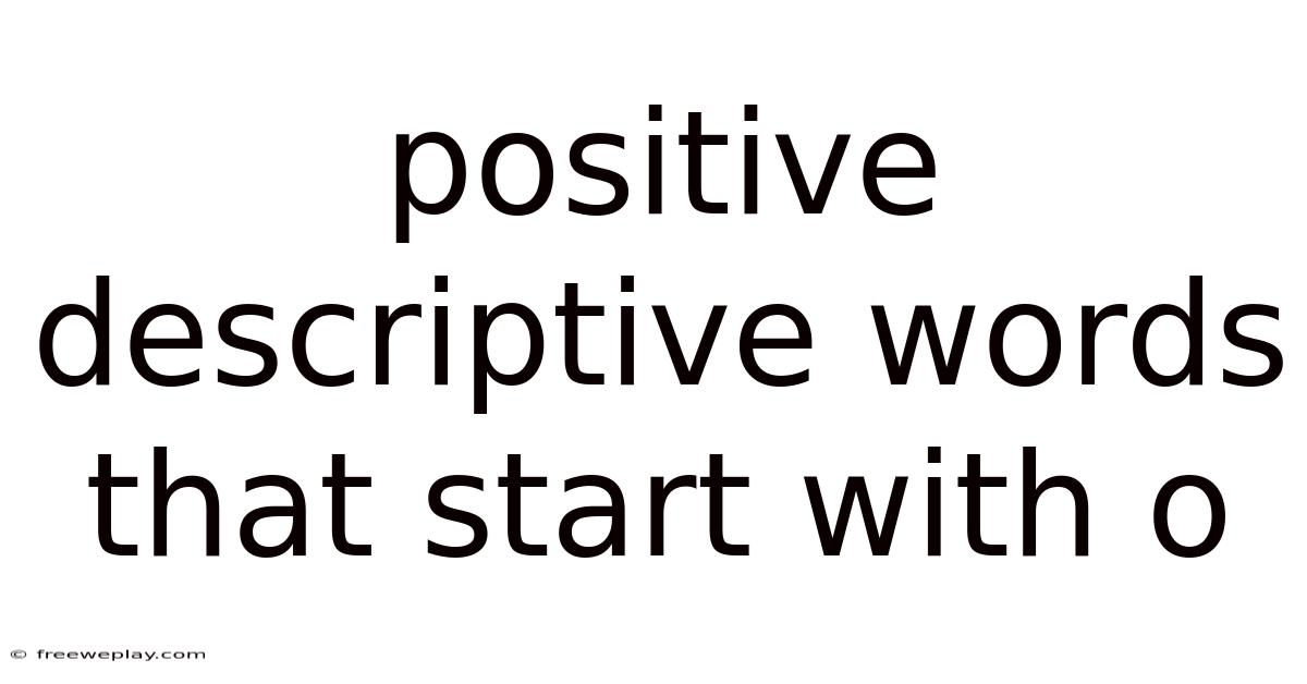 When it comes to expressing admiration, encouragement, or appreciation, the right words can make all the difference. These words can bring warmth, optimism, and clarity to both spoken and written language. On the flip side, whether you're crafting a heartfelt compliment, writing a professional recommendation, or simply trying to uplift someone's day, knowing a variety of positive "O" words can expand your expressive toolkit. That said, positive descriptive words that start with the letter "O" offer a rich and often overlooked vocabulary for enhancing communication. This article explores a wide range of such words, explains their meanings, and provides practical examples to help you use them effectively in everyday life The details matter here..