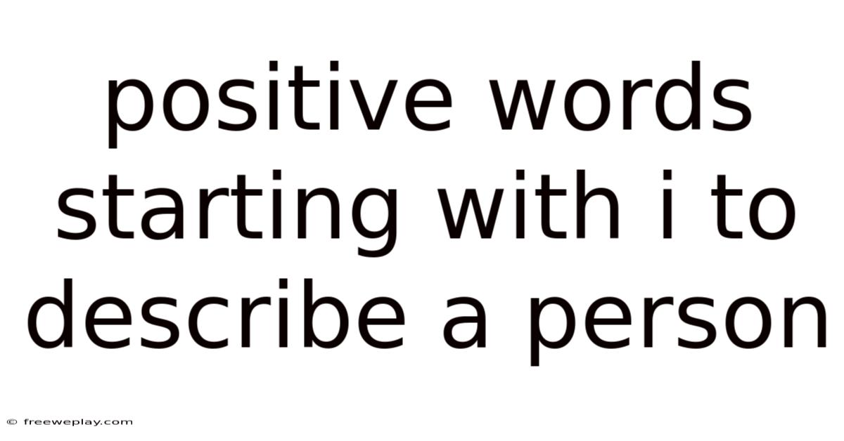 The significance of positive descriptors cannot be overstated. They act as linguistic beacons, guiding us towards appreciating the best in others and, by extension, fostering environments of encouragement and respect. Words like "inspiring" or "intuitive" don't just label; they acknowledge specific virtues and contributions. Choosing the right "I" word requires thoughtfulness, moving beyond superficial praise to capture the unique essence of someone's character. Day to day, this deliberate use of language cultivates a culture of positivity, reinforcing desirable behaviors and strengthening social bonds. It shifts focus from flaws to strengths, promoting empathy and understanding. The bottom line: mastering this lexicon empowers us to communicate appreciation more effectively, enriching both our own lives and the lives of those we describe No workaround needed..