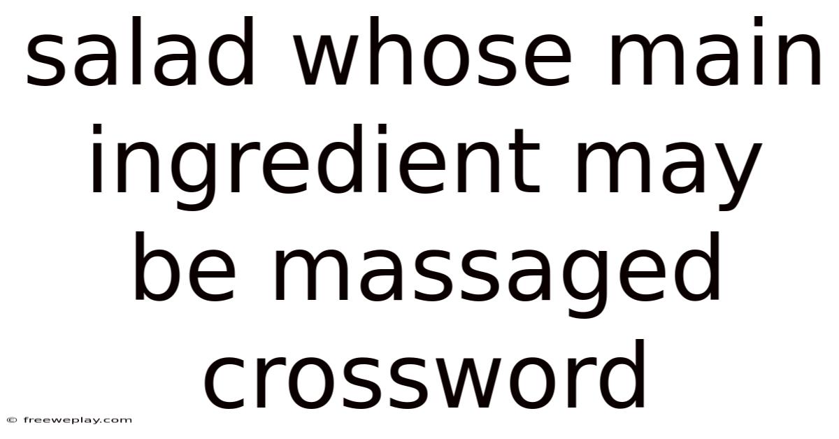 The phrase salad whose main ingredient may be massaged crossword presents a fascinating linguistic and culinary puzzle that invites curiosity. Because of that, this ingredient must be versatile enough to be a salad base yet strong enough to be the subject of a grid-based word game. The key to solving this riddle lies in identifying an ingredient that is both commonly massaged in culinary practice and fits the typical structure of a crossword answer. The most logical candidate, which aligns with both the culinary technique and crossword conventions, is "KALE". That's why at its core, this clue describes a specific type of salad where the primary component undergoes a particular preparation method—massaging—and is also the solution to a crossword puzzle. Kale is a leafy green that is frequently massaged to improve its texture and palatability, and its four-letter structure makes it a common and fitting answer in crossword puzzles Worth keeping that in mind..