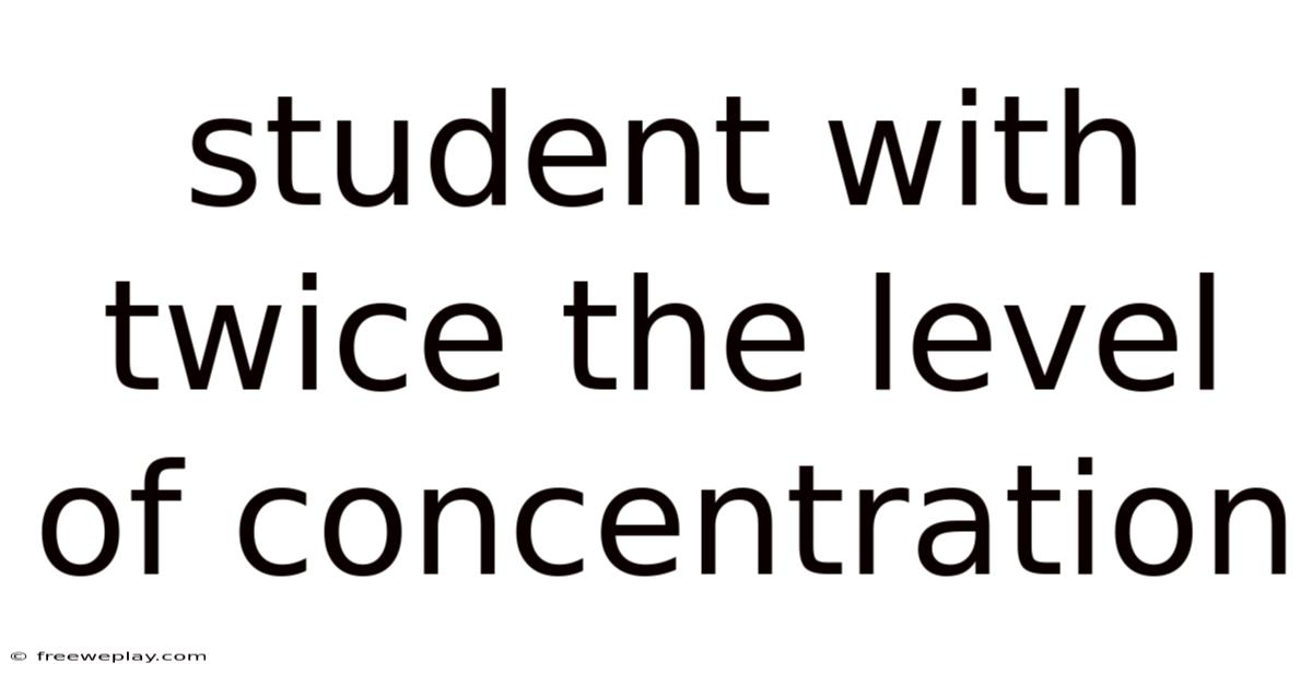 The term "student with twice the level of concentration" is not a fixed definition but rather a descriptive phrase that highlights an exceptional ability to maintain focus. A student with twice the level of concentration would, therefore, demonstrate a level of focus that is approximately double the average. In educational contexts, concentration is often measured by a student’s ability to sustain attention on a task, avoid distractions, and process information efficiently. This does not necessarily mean they are twice as intelligent or hardworking, but rather that they have mastered techniques to optimize their cognitive resources Not complicated — just consistent..