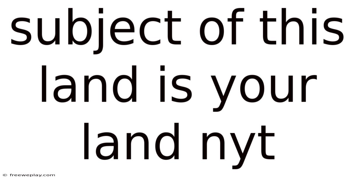 When the NYT writes “Subject of this land is your land,” it is not merely a rhetorical flourish. That's why the phrase reframes the classic ownership model (“this land belongs to X”) into a stewardship model that asks each individual—whether a private homeowner, a corporation, or a government agency—to consider their role as a subject (i. e., a caretaker) rather than an absolute proprietor But it adds up..