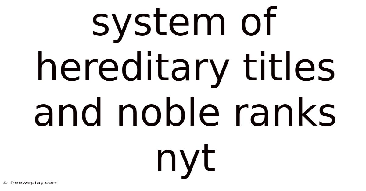 This article will explore the system of hereditary titles and noble ranks in depth, explaining its origins, mechanics, and variations across different civilizations. Because of that, we will dissect how these titles are inherited, the criteria for elevation or degradation within the hierarchy, and the practical implications of holding such status. By examining real-world applications and theoretical underpinnings, we aim to demystify this complex noble architecture and clarify its relevance in the modern world, moving beyond simplistic notions of royalty to grasp the sophisticated legal and social machinery that sustained it And it works..