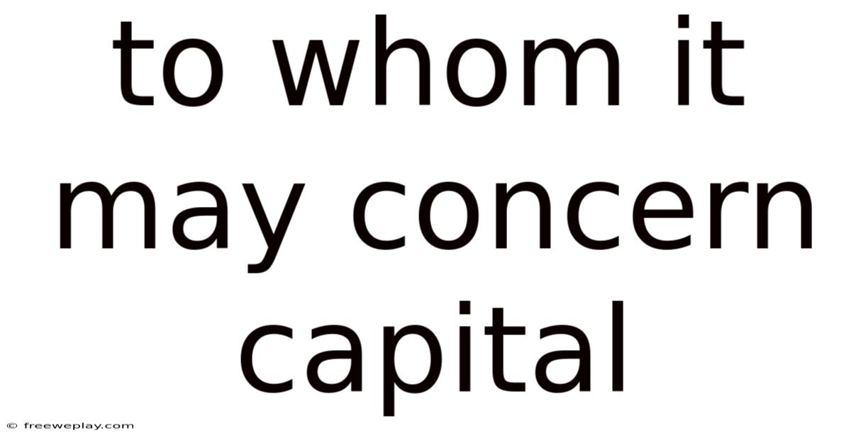 The phrase “To Whom It May Concern Capital” is not a standard term, but it can be interpreted in several ways: