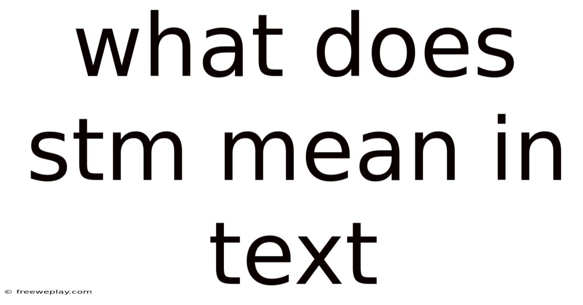 STM is a widely used acronym in digital communication, especially in texting, social media, and online messaging. While it may seem like a simple abbreviation, its meaning can vary depending on the context in which it's used. Practically speaking, understanding the intended meaning of STM in any given context is crucial for effective communication. And sTM most commonly stands for "Short-Term Memory," a concept rooted in cognitive psychology, but it can also mean "Smiling To Myself" or even "Stop Talking More" in casual conversations. This article will explore the different interpretations of STM, its origins, and how it's used in everyday language Surprisingly effective..