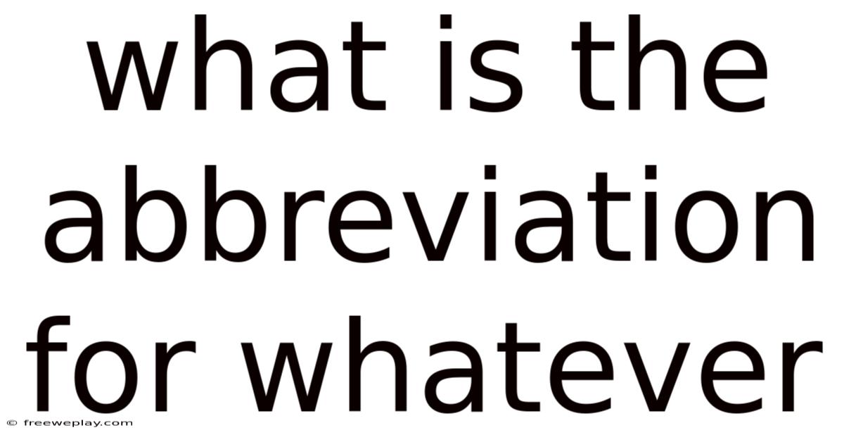 In the sprawling digital landscape and within the fast-paced realm of modern communication, the constant drive for efficiency has birthed a ubiquitous phenomenon: the systematic shortening of language. This practice of linguistic compression gives rise to a fundamental question about what is the abbreviation for whatever. Understanding this specific contraction is not merely an exercise in trivial knowledge; it is a key to navigating contemporary text-based interaction, allowing for smoother, faster, and more informal communication. On top of that, whether in the rapid-fire exchanges of online chat rooms, the concise character limits of social media platforms, or the streamlined notes of professional documentation, we routinely transform complex phrases into manageable fragments. The term itself serves as a versatile placeholder, a linguistic shrug that conveys indifference or acceptance, and mastering its abbreviated form is essential for anyone seeking to participate effectively in today’s connected world That's the whole idea..