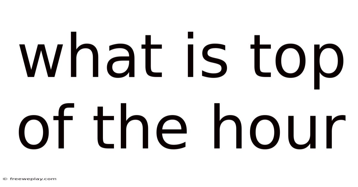 Q: Is the top of the hour the same as "on the hour"? A: Yes, "top of the hour" and "on the hour" are synonymous. Both refer to the exact moment when a new hour begins, such as 1:00, 2:00, or 3:00 That's the part that actually makes a difference..
