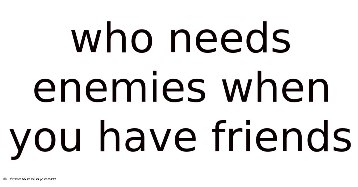 The phrase "who needs enemies when you have friends?" might seem paradoxical at first glance. That said, the truth lies in the subtle yet powerful ways that adversaries can enrich our lives. On the flip side, in this practical guide, we will explore the importance of having friends who challenge you, the psychological benefits of facing opposition, and how embracing the concept of enemies can lead to personal transformation. Whether you're navigating a personal challenge or simply seeking a deeper understanding of human relationships, this article will provide you with insights that matter Not complicated — just consistent..