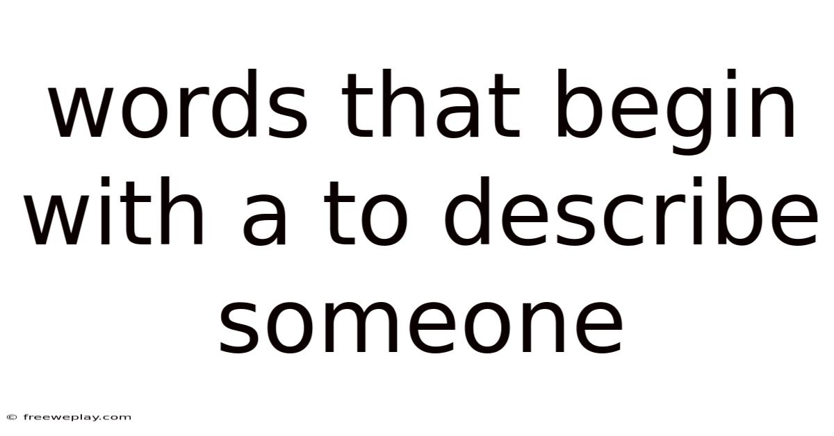 When we look closely at the way language shapes our perception, it becomes clear that certain words hold immense power. Consider this: among these, words that begin with the letter "A" play a unique role in how we describe and perceive individuals. Even so, these words are not just simple building blocks of speech; they carry emotions, intentions, and nuances that can transform a simple observation into a vivid character portrait. In this comprehensive article, we will explore the significance of words that start with "A" in describing someone, their impact on communication, and how they shape our understanding of people Not complicated — just consistent..