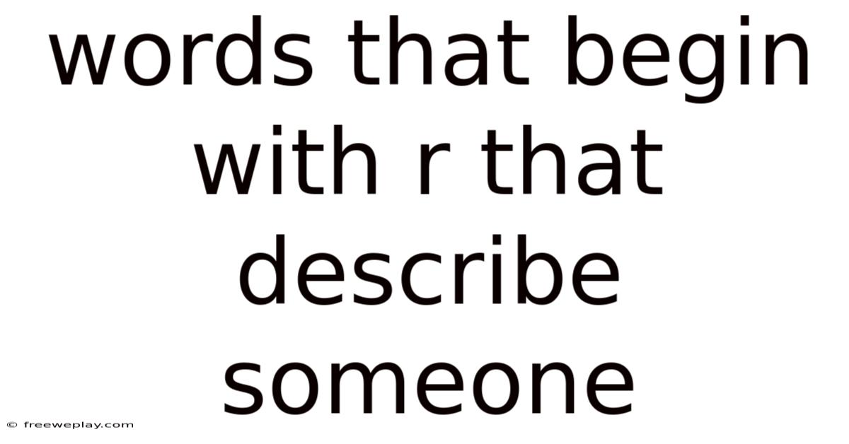 When it comes to describing someone, the right words can paint a vivid picture of their character, personality, or behavior. That's why whether used in literature, personal interactions, or professional settings, R-starting adjectives can shape how others perceive and interact with an individual. These terms not only help in communication but also allow for a deeper understanding of human behavior and individuality. Words that begin with R that describe someone can range from positive attributes like resilient or reliable to more complex or nuanced descriptors such as reckless or resentful. This leads to the significance of such words lies in their ability to capture the essence of a person in a concise yet meaningful way. Here's the thing — among the vast array of adjectives in the English language, those that begin with the letter R offer a unique and often powerful way to convey specific traits. This article explores the breadth of words that begin with R to describe someone, delving into their meanings, applications, and cultural relevance. By examining these terms, we can better appreciate the richness of language and its role in defining human characteristics But it adds up..