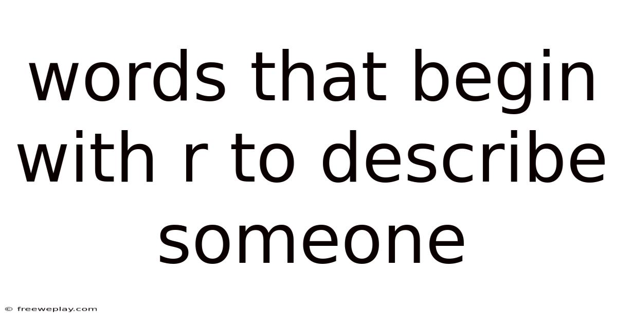 The concept of using words that begin with "R" to describe someone is rooted in the fundamental role of adjectives in language. Adjectives are the building blocks of descriptive language, allowing us to convey specific qualities or characteristics. In practice, when focused on the letter "R," this category becomes a specialized subset that requires attention to both meaning and context. Worth adding: for example, the word "reliable" might be used to describe someone who consistently fulfills their responsibilities, while "reckless" could highlight a tendency to act without considering consequences. These words are not just arbitrary labels; they carry cultural, psychological, and social implications that shape how we perceive individuals It's one of those things that adds up..