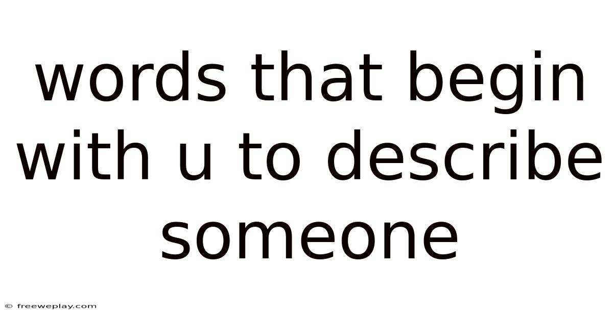 When you’re searching for words that begin with U to describe someone, you’re actually tapping into a surprisingly rich slice of the English lexicon. From the everyday to the literary, adjectives and nouns that start with the letter “U” can convey everything from a person’s moral stance to their unique flair. This article will unpack the full spectrum of such terms, show you how to use them effectively, and even reveal why they matter in both casual conversation and academic writing. Think of this as your go‑to guide for mastering “U‑words” that paint a vivid picture of a human being Turns out it matters..
