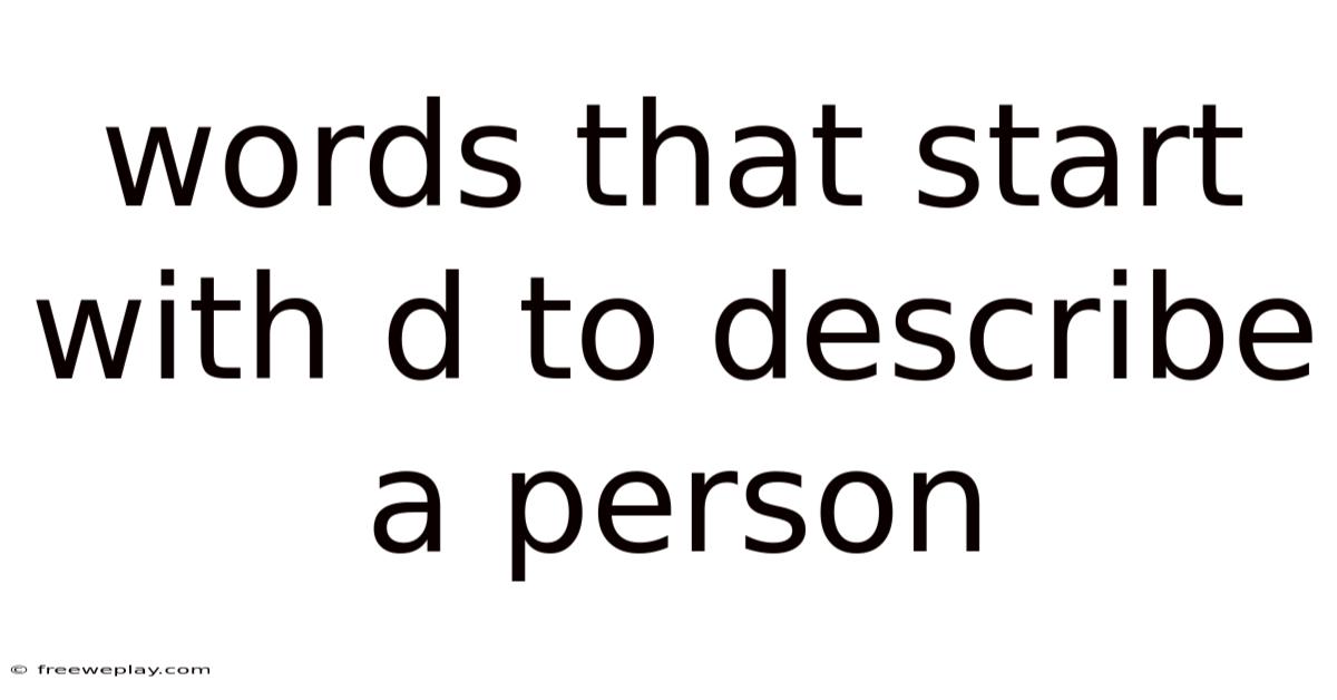 Language is our primary tool for understanding and navigating the complex world of human personality. Even so, the words we choose to describe someone do more than just label; they frame perception, influence interaction, and can even shape a person's self-concept. Now, among the vast lexicon of descriptors, words beginning with the letter 'D' offer a particularly rich and nuanced palette. From diligent and dependable to domineering and disruptive, the 'D' family captures a stunning spectrum of human character, from the most admirable virtues to the most challenging flaws. But this article will serve as a practical guide to these descriptive words, exploring their meanings, contexts, and the profound impact of precise vocabulary. Mastering this subset of adjectives equips you with the clarity to articulate observations, the empathy to understand motivations, and the wisdom to communicate with greater accuracy and kindness It's one of those things that adds up..