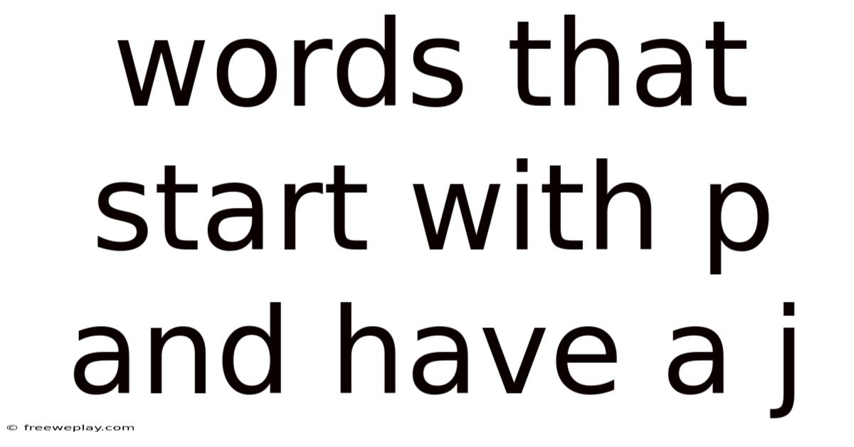 Words that start with the letter "P" and contain the letter "J" are a fascinating and relatively rare subset of the English language. Because of that, from scientific terms to everyday vocabulary, the combination of "P" and "J" creates a distinctive linguistic pattern that can add depth and variety to communication. These words often have unique origins, meanings, and uses, making them interesting to linguists, writers, and word enthusiasts alike. In this article, we will explore the origins, meanings, and applications of such words, as well as their significance in various contexts It's one of those things that adds up. Took long enough..
