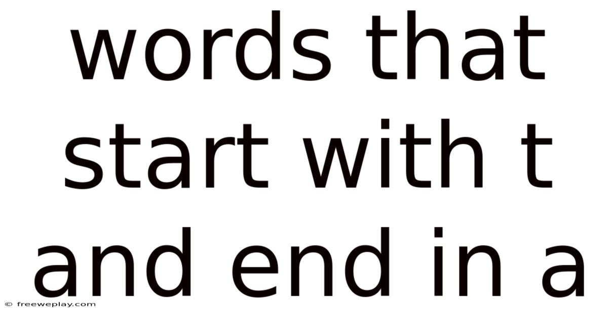 To grasp the concept of words that start with t and end in a, You really need to understand the mechanics of English phonetics and morphology. Which means the English language is built on a system of sounds (phonemes) that combine to form syllables, which in turn construct words. And the pattern we are investigating is a clear example of a phonological template. Worth adding: the "t" at the beginning is a consonant that requires the speaker to block airflow and then release it abruptly, creating a sharp, percussive sound. This is followed by a vowel sound or a series of consonants, and the word must conclude with the sound "a," which is typically a long 'a' as in "father" or a schwa sound that resolves to an open 'a'.