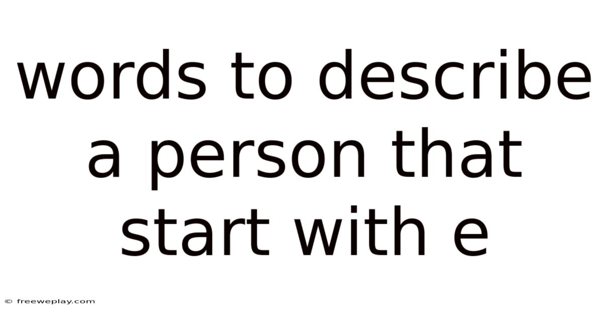Choosing the right word is an act of distillation, condensing complex traits, behaviors, and dispositions into a single, resonant syllable. Words starting with 'E' are especially potent because they often evoke strong imagery and connotations. On the flip side, 'E' is a letter associated with energy, emotion, and expression – qualities central to human identity. Even so, using these specific terms moves us beyond generic labels like 'nice' or 'difficult,' allowing us to pinpoint the unique constellation of attributes that define someone. Consider this: whether crafting a compelling character sketch, writing a nuanced resume, offering constructive feedback, or simply understanding the people around us more deeply, this specific subset of descriptive language provides the granularity necessary for true insight and effective communication. It transforms passive observation into active, articulate description.