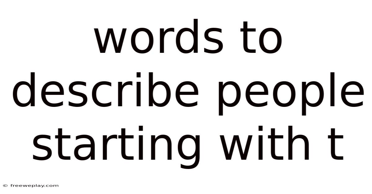 This article explores words to describe people starting with T, diving into their meanings, usage, and cultural significance. We’ll break down categories such as positive, negative, and neutral descriptors, provide real-world examples, and address common mistakes to avoid. By the end, you’ll have a strong toolkit of terms to describe people effectively and thoughtfully And that's really what it comes down to..